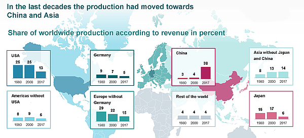 FIG 1: Production had moved forwards to China and Asia (Klaus Helmrich, Siemens, presented in Dudelange, Luxembourg, 6 February 2019), Source: IHS Q4 2018
