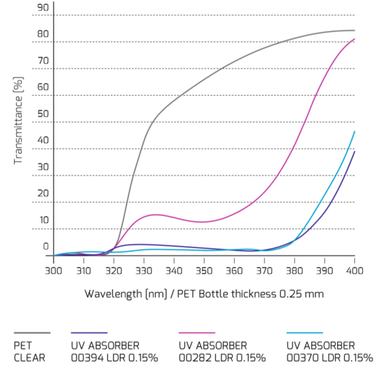 Fortunately, the liquid technology of colours and additives has progressed so much that it is possible to combine trendy colours with performance additives most of the time. This is the case with powerful bright shades with UV protection used for kids’ juices or transparent shades combined with UV additives for vitamin and flavoured waters. It also applies to special barrier Whites used to protect fresh, ESL and even UHT milk from damages caused by visible light and UV when packaged in a monolayer PET bottle. REPI UV Absorbers create a barrier to the harmful UV-rays and visible light, which can damage the product inside.