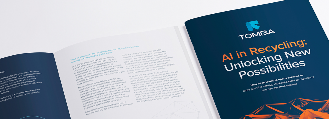 The eBook details how the powerful synergy achieved by combining deep learning with traditional sensors in optical sorters is unlocking new opportunities for the recovery of valuable resources, enhancing material purity and creating new revenue streams. This is exemplified by TOMRA's award-winning GAINnext™ solution for food-grade plastics recovery (for PET, PP and HDPE), PET and paper cleaning and high-purity recovery of aluminum Used Beverage Cans (UBC), as well as the capabilities of the PolyPerception AI-based waste analyzer in providing real-time, end-to-end object tracking and classification of waste streams.