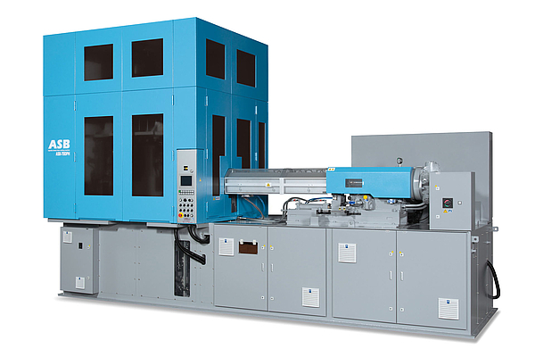 ASB has had a long track record of developing heat-setting of PET containers for hot filling and products requiring pasteurization. In order to achieve the highest filling temperatures, the double blow technique is preferred where the first bottle is blown oversize by up to 20%, then heated to allow it to shrink back and relax the chain molecules while crystals form, then re-blowing into the final shape. Naturally, the process requires two separate sets of blow mold so dedicated machines such as ASB’s HSB Series are generally required. Now in the pipeline is a project to take the basic ASB Series one-step platform and modify it to include a totally new blow molding station that will allow double-blow molding.