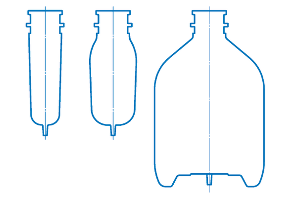 Fig. 1: Preform re-shaping applied to a PP infusion bottle