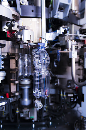 XTRA can produce bottles from 0.2 up to 3.5 liters in volume, quickly and easily. It can also accommodate different neck sizes (28/38 mm). In addition, the clamp stroke has two settings: short, to produce bottles of up to 1.5 L at a maximum speed of 2550 bhc; and long, for containers up to 3 L and an output of up to 2400 bhc. This mechanical flexibility is complemented by the ability of the machine to produce hot- and cold-fill containers, without any changes to the system.